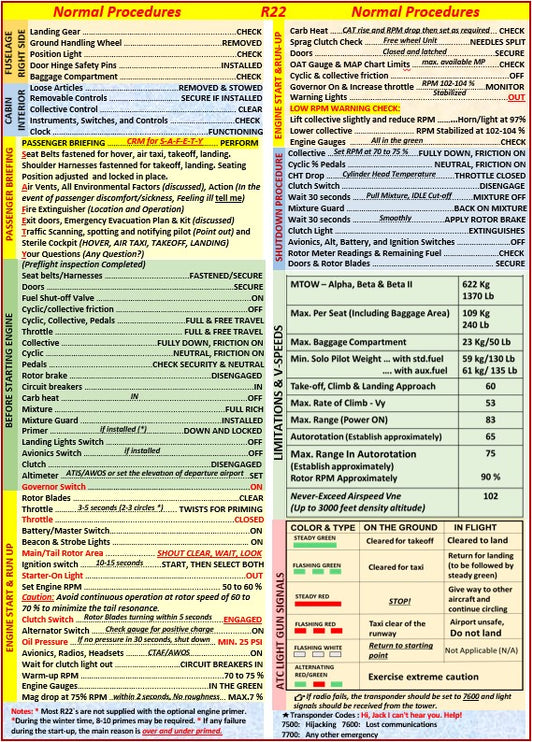 Robinson 22 (R22) Helicopter Extended Universal QRef Checklist for Student Pilots, All In One